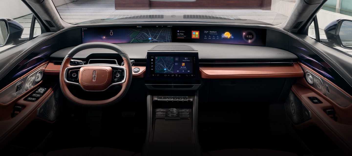 The 2025 Lincoln Aviator Black Label’s available Moonbeam theme creates a celestial experience with Moon ash wood accents and Opulence leather seating. For an ambiance inspired by air travel, the Flight theme uses Luggage Tan and Ebony Jet hues combined with naturally textured leather seats and darker engine turn appliqués to mimic the finish of early airplane instrument panels.